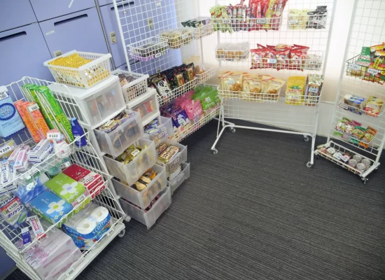 - オフィス内のちいさなコンビニは、食品や飲料、日用品を幅広く取り揃えています。季節ごとの新商品もあり、毎日新しい発見があります。働く皆さんのちょっとした楽しみになること間違いなしです。