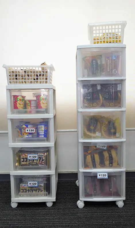 - ショーケースの設置には、原則として弊社サービススタッフが伺います。商品棚や冷蔵庫、レジなどを設置し、商品の陳列を行い販売を開始します。商品はなんと50円から。シンプルな料金設定です。ショーケースから取り出す時に集金ボックスに料金を入れてください。
