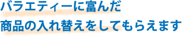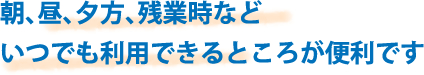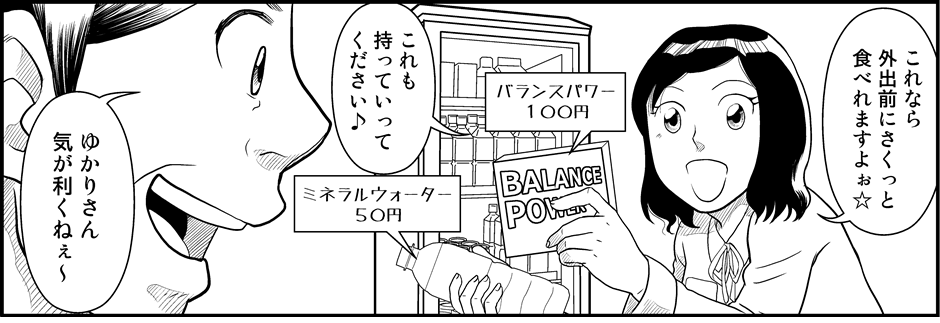 | 大手携帯電話ショップ様 自動販売機よりも値段が安いということで導入してみました。 自動販売機や深層水等前からドリンクの設備は充実しているにもかかわらず、特にミネラルウォーターや、100円の缶コーヒーの売れ行きがすごいです。 自動販売機と比べて、バラエティーに富んだ商品の入れ替えを行ってもらえるので、楽しみながら使用することができますし、納品に来てくれている方も元気で明るいので、要望も言いやすいですね。 内勤の人だけでなく、営業が会社を出るときや戻ってきたとき使ったり、残業で遅くなったときにも軽食類があって助かっています。 |